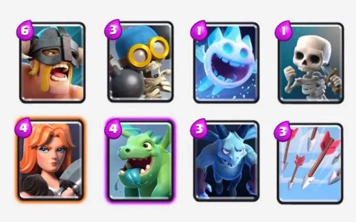 Miner Deck is another best Deck of the Spell Valley that is a collection of defense and attack cards. The Deck contains a combination of cards that can help attack Hog Rider and Goblin Barrel. The cards are defensive against Inferno Tower, Spear Goblins, Bats, and Valkyrie. The deck also contains spell cards like Zap and Arrows.