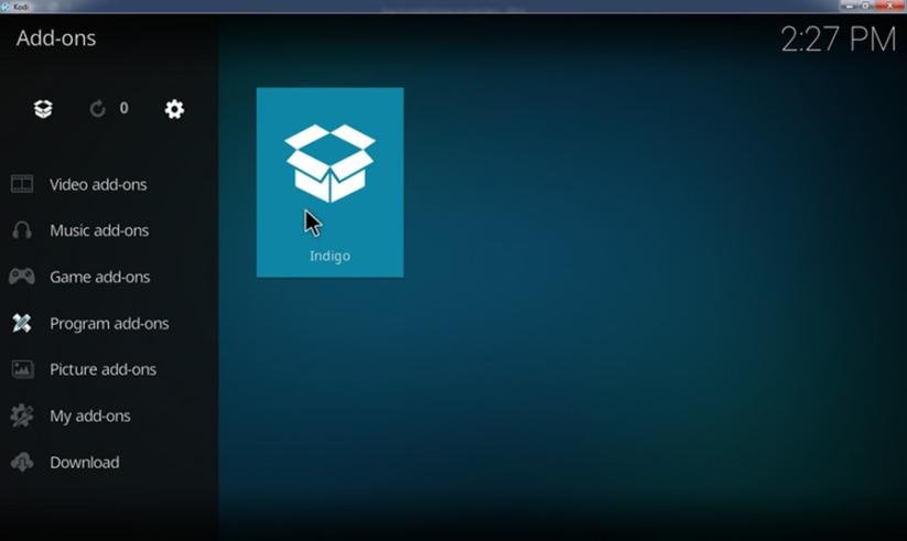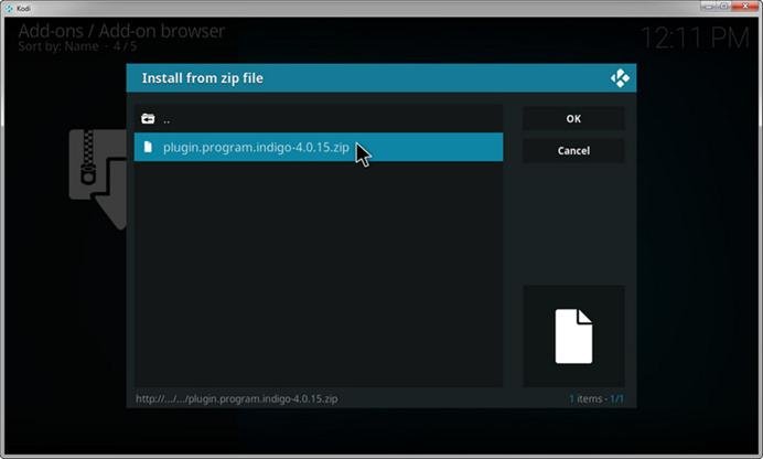 - Choose plugin.program.indigo which represents different versions of Indigo and click “OK”.