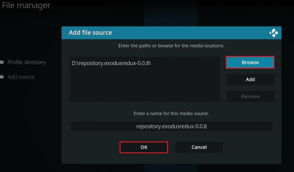 - Write http://fusion.tvaddons.co in the “paths or browse for the media location” and click “OK”.