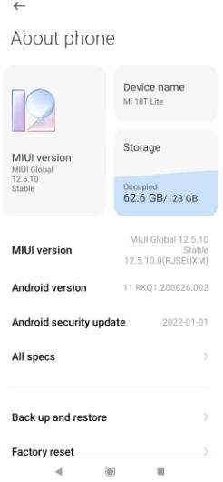 Step 2: To get the developer mode active on your phone, tap seven times the build number for instance in this phone it is MIUI Version