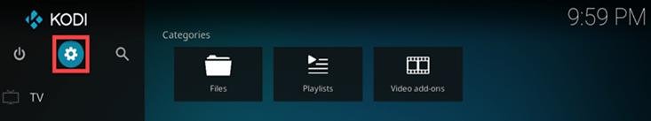 - Go to “Settings” on the Kodi home screen.