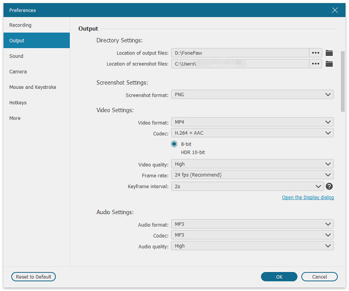 Click the “≡” icon on the menu bar to enter Preference Settings. You can customize many parameters such as your preferred output format and frame rate. For high-quality gameplay recordings, we recommend optimizing settings with the H.265 codec and a 60 FPS frame rate to maintain 4K quality without excessive storage consumption.