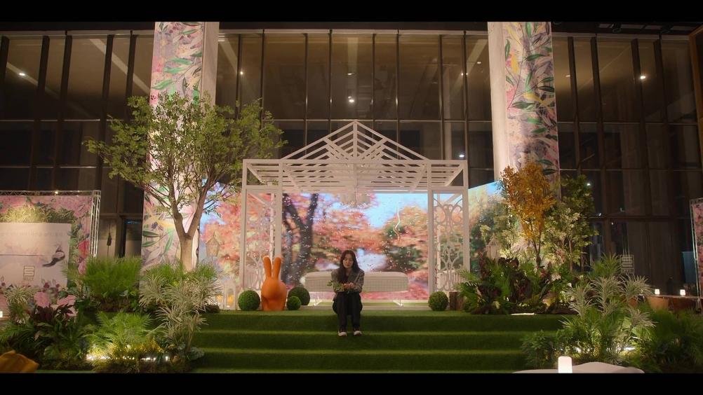 The team is hosting an event that is a pop-up for the mattress company they’re running an ad campaign for, and things are running smoothly — perhaps too well. An unintentional homeless person causes a disturbance. Ye-sool is knocked backward off the stage and is snatched by Min-hu, which results in her getting the edge of the set-piece hit in the back of his head… near precisely the spot of his upcoming scar.