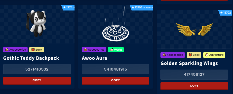 - Copy the ID code and paste it into the game to unlock the accessory.