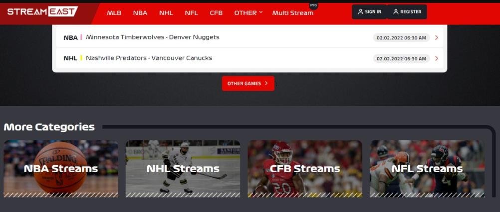 Streameast live is a sports streaming portal where you can watch soccer, basketball, tennis, cricket, golf, and wrestling matches. The live streaming portal provides access to sports streaming sites like MLB TV, DAZN, or NBC Sports without any premium subscription.