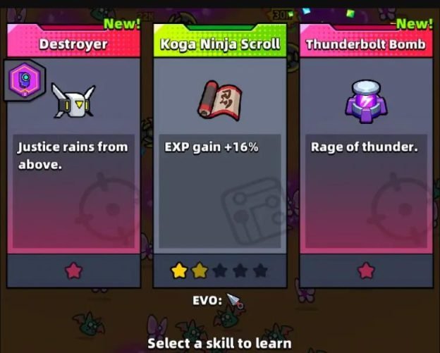 In other words, you will come to know when to upgrade a skill, as shown by the EVO. Upgrading or evolving a weapon is necessary to ensure you clear the next chapter of Survivor.io with flying skills.